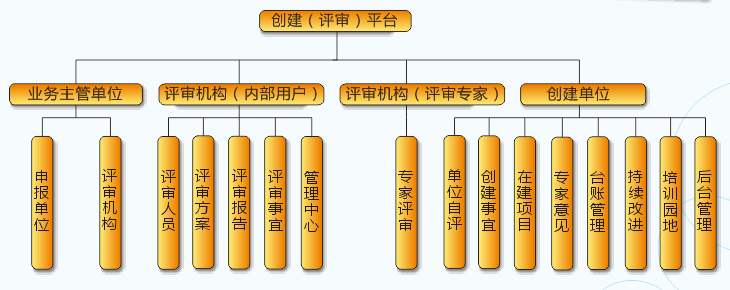 2、所有評審機構。由于評審要求和流程一致,本系統提供專家組管理、創建單位管理、現場評審管理和數據分析運用等功能,滿足各評審機構相關工作需要。